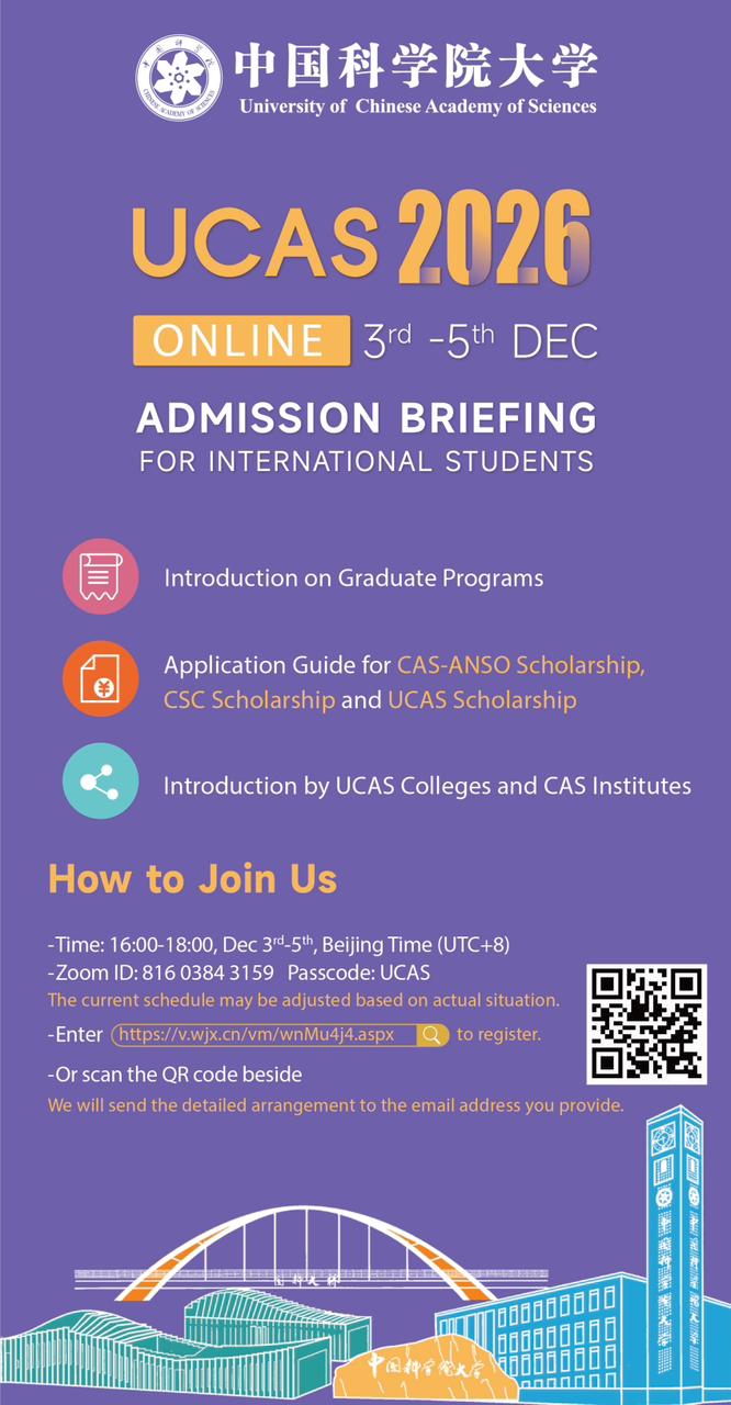 According to an agreement between the Alliance of International Science Organizations (ANSO), the Chinese Academy of Sciences (CAS) and The World Academy of Sciences (TWAS/UNESCO) for the advancement of science in developing countries, up to 40 students/scholars from developing countries will be sponsored to study in China for doctoral degrees for up to 4 years.