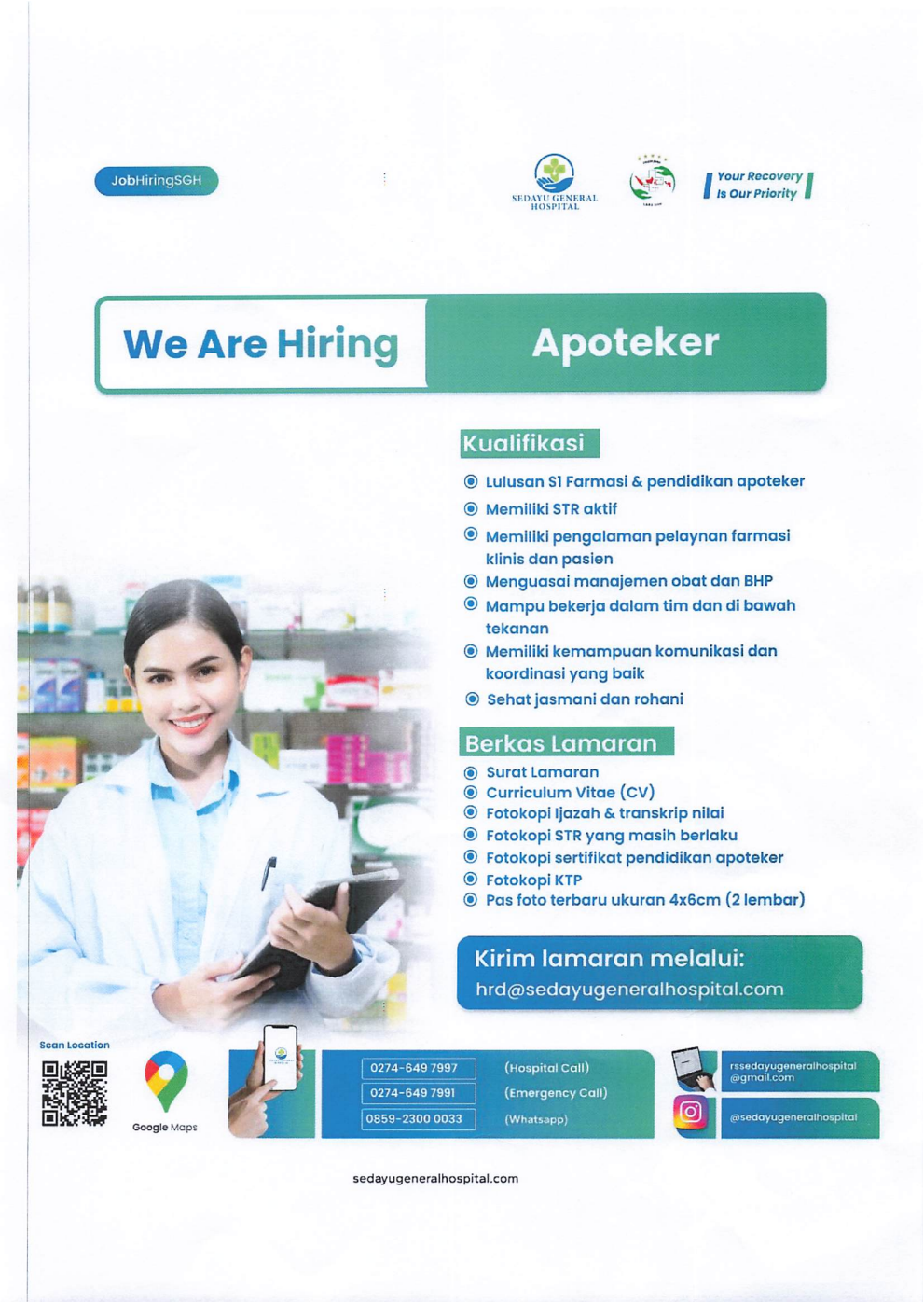 Pendidikan minimal S2 Farmasi (apt. M.Farm)