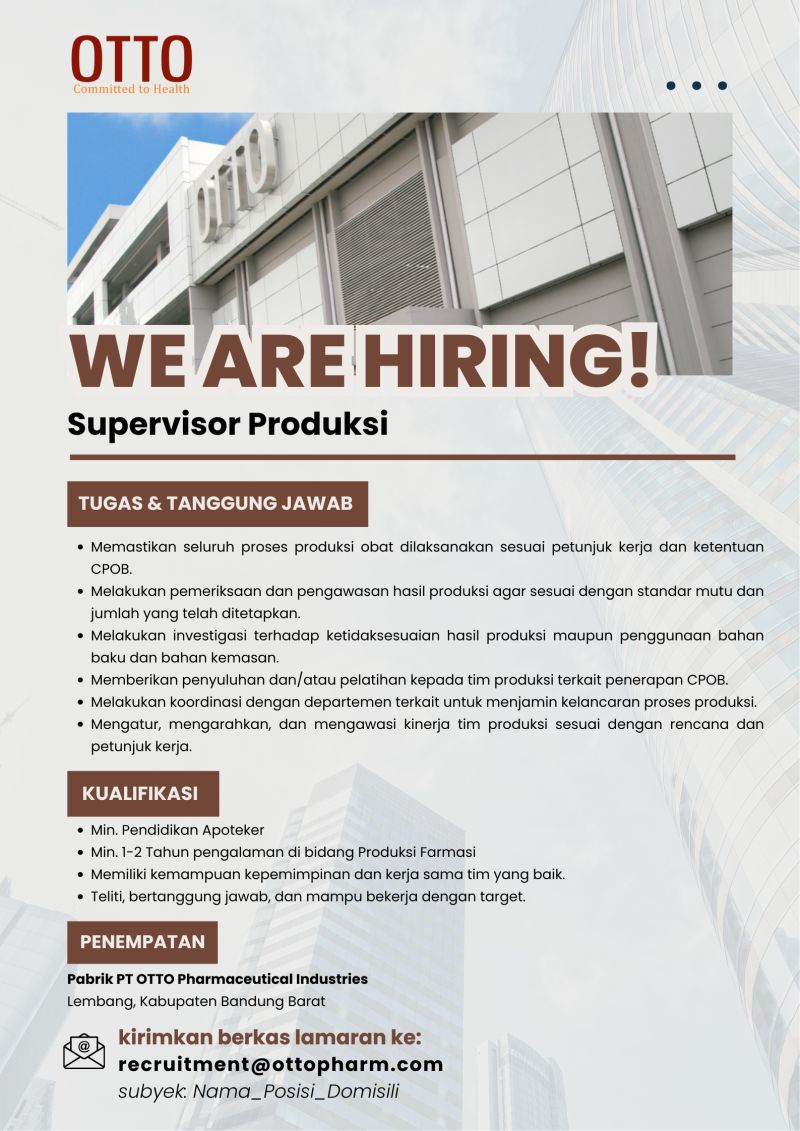 • Supervisor Produksi PT OTTO Pharmaceutical Industries